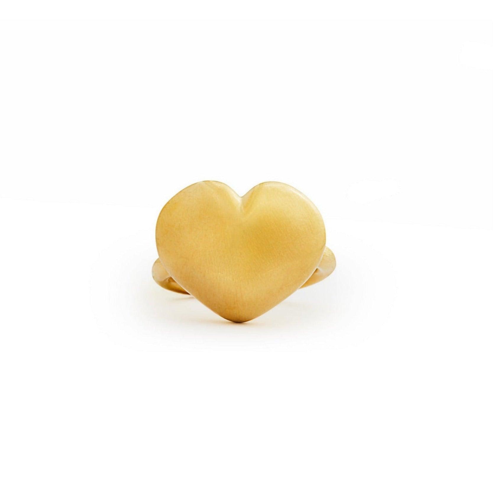 A divinely sculptural heart ring handcrafted in satin finished 18k yellow gold.
