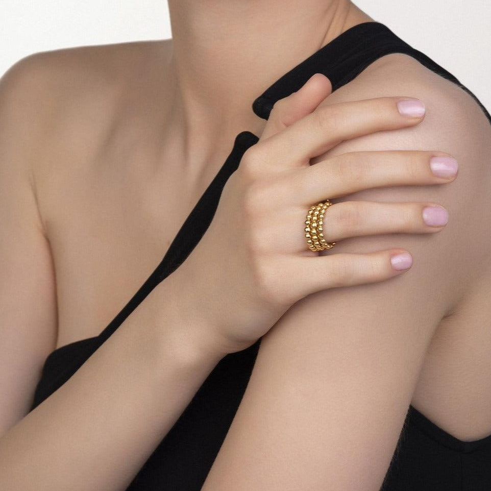 This 18k yellow gold Demetra Coil Ring is carefully handcrafted for an elegant and timeless look. Its wrap around design provides an eye-catching effect and luxurious feel. The finely detailed grain gives a unique and charming beauty.