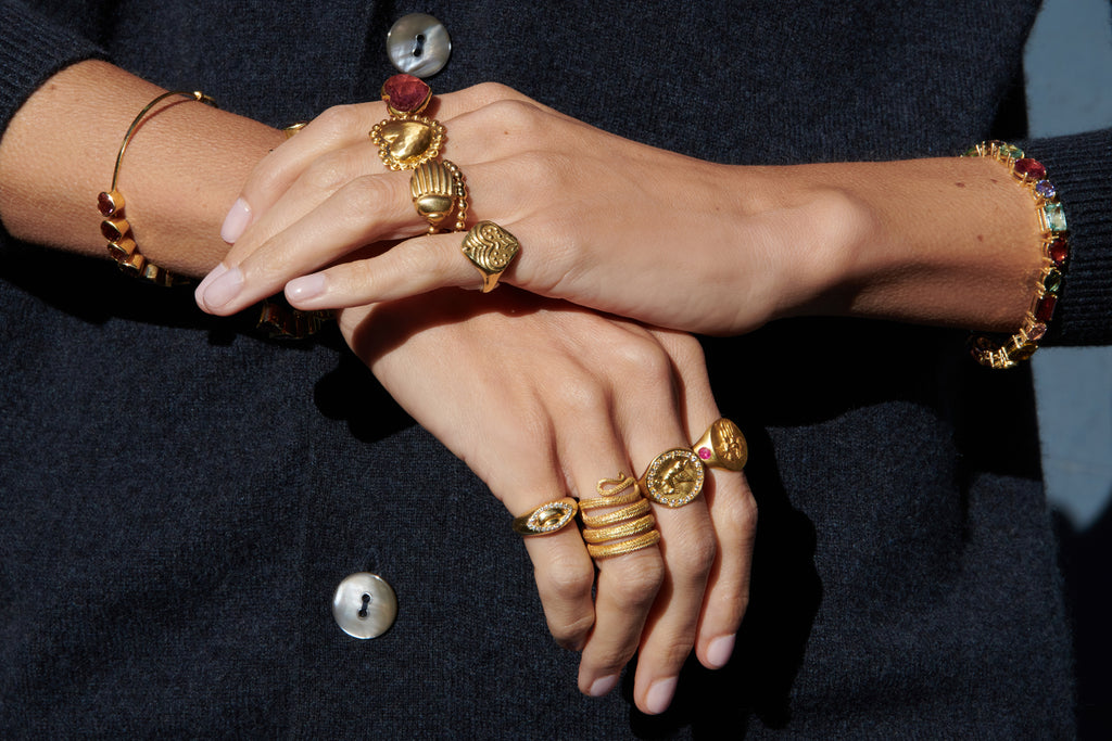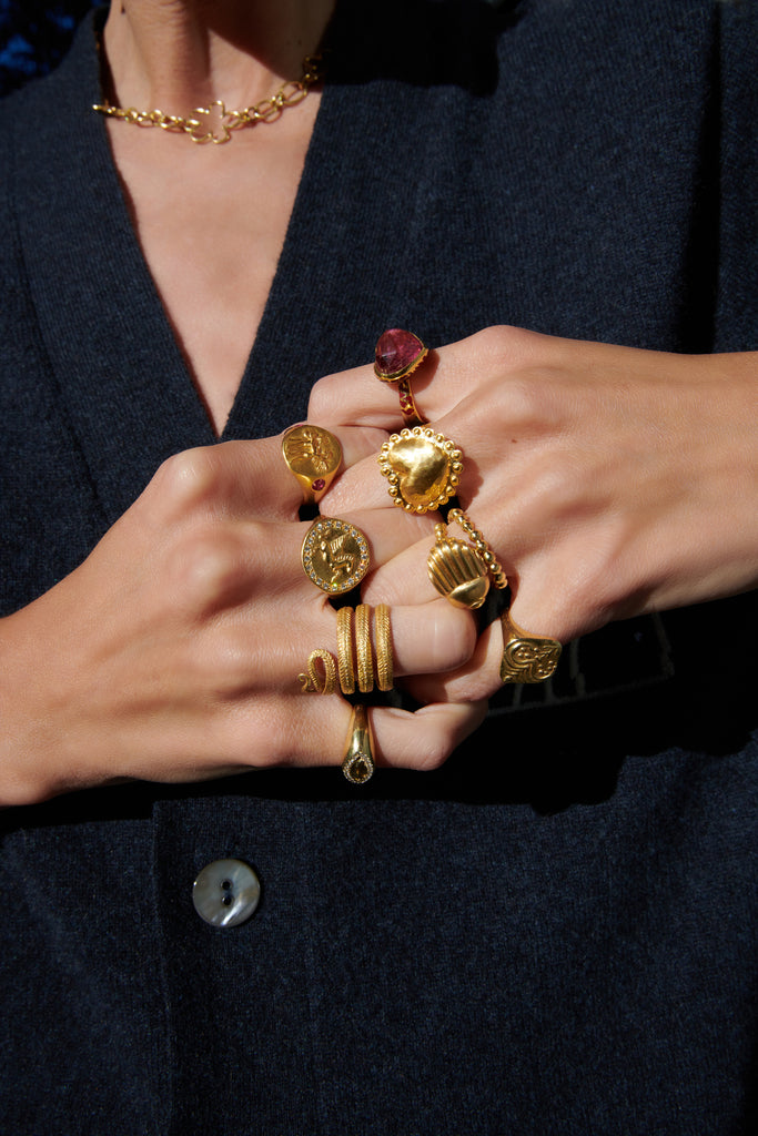 This captivating signet ring is fashioned with a unique rhombus shape and embellished with a Palm branch motif seen on an ancient Greek amphora. Expertly handcrafted in 18k yellow gol, this ring bears an ancient symbol of peace and prosperity while incorporating a modern element of sleekness and symmetry.